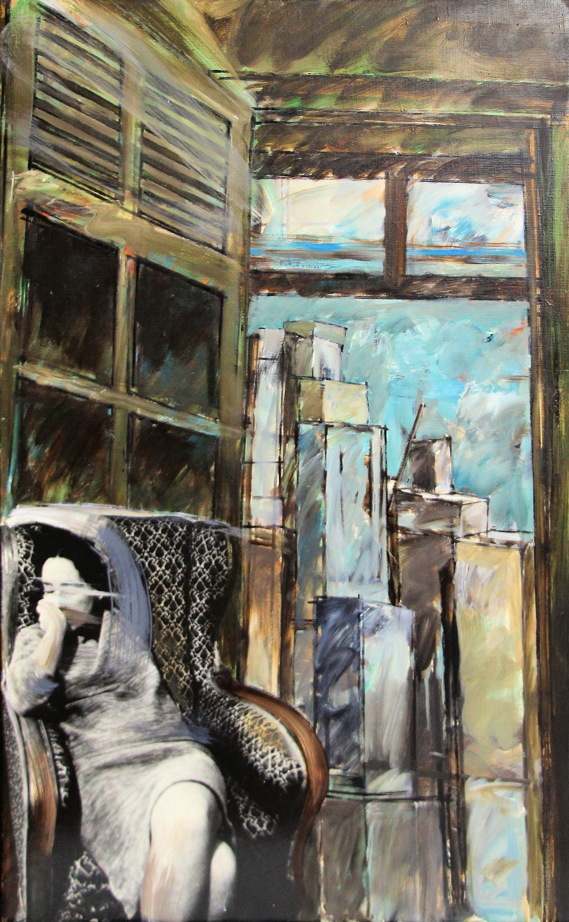 n.156 "Woman at the Window" Photo collage and oil on canvas. Year:1984. 75 x 120cm