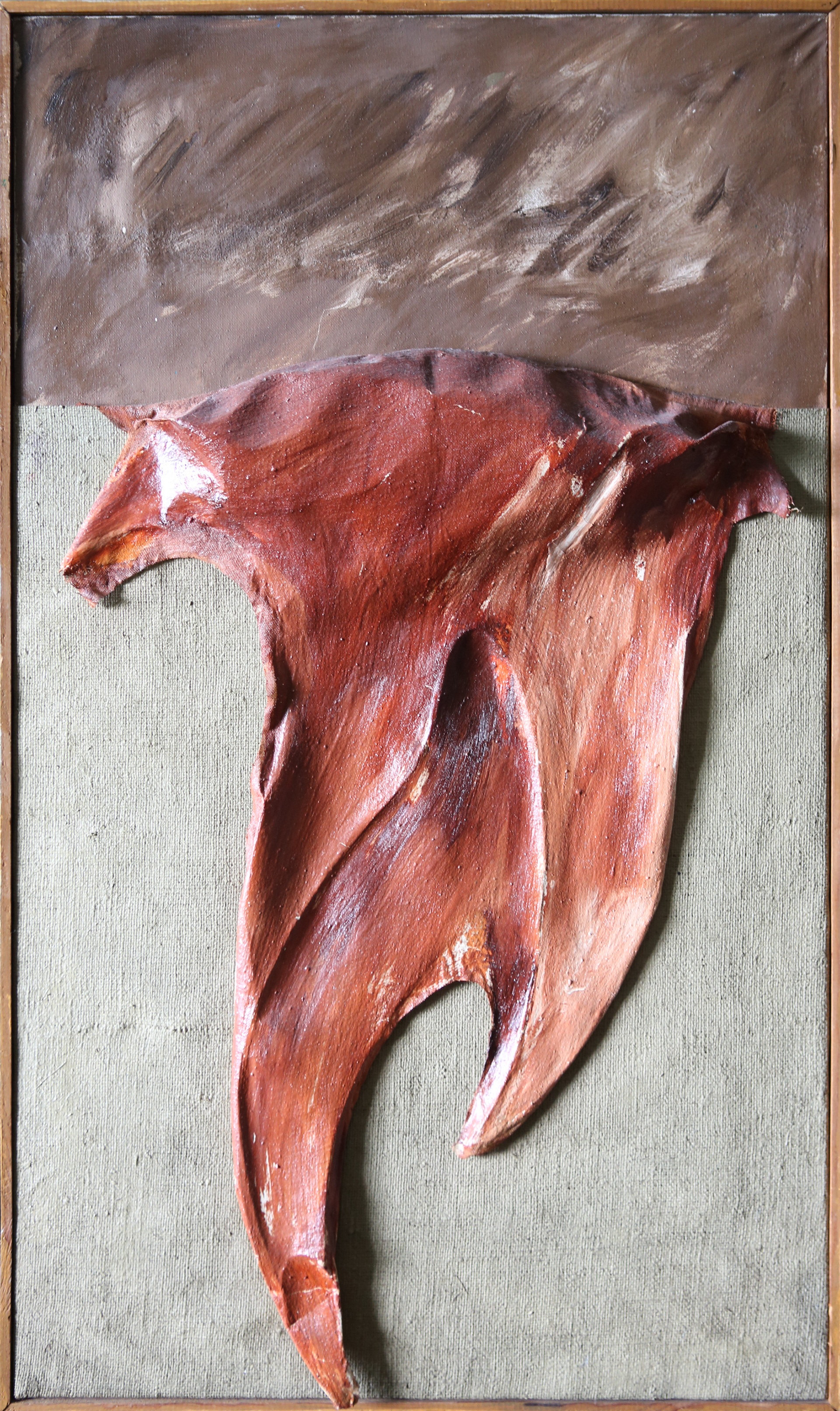 n.154 "Colgajo" Enamel on wood, acrylic on carton and oil on canvas. Year:1982. 72 x 72cm