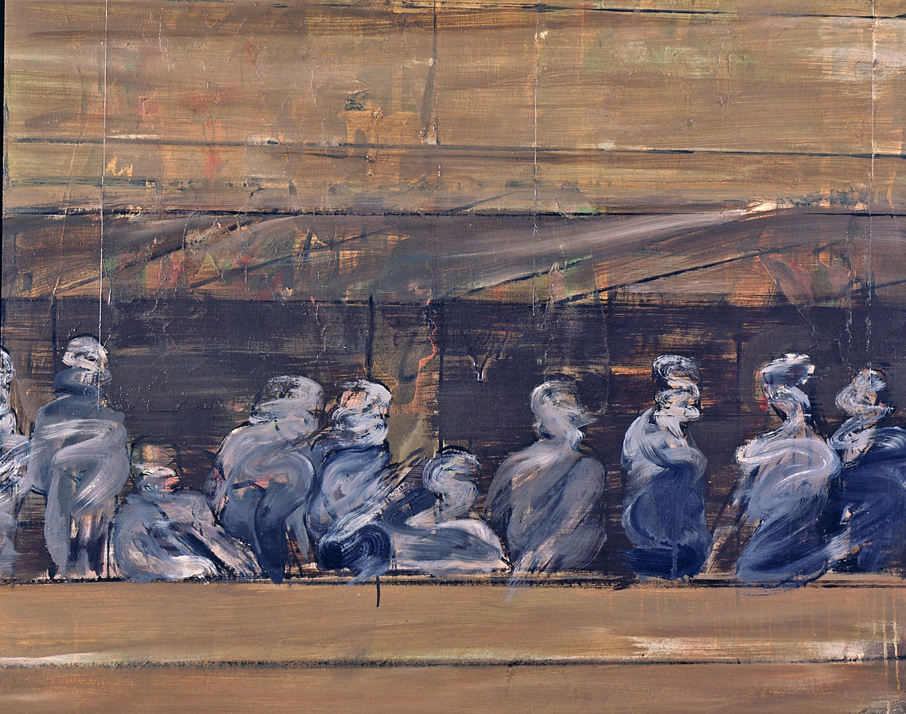 n.165 Backside from "Three Male Windows", "La Trasquila". Year:1987. Oil on canvas. 75 x 200cm