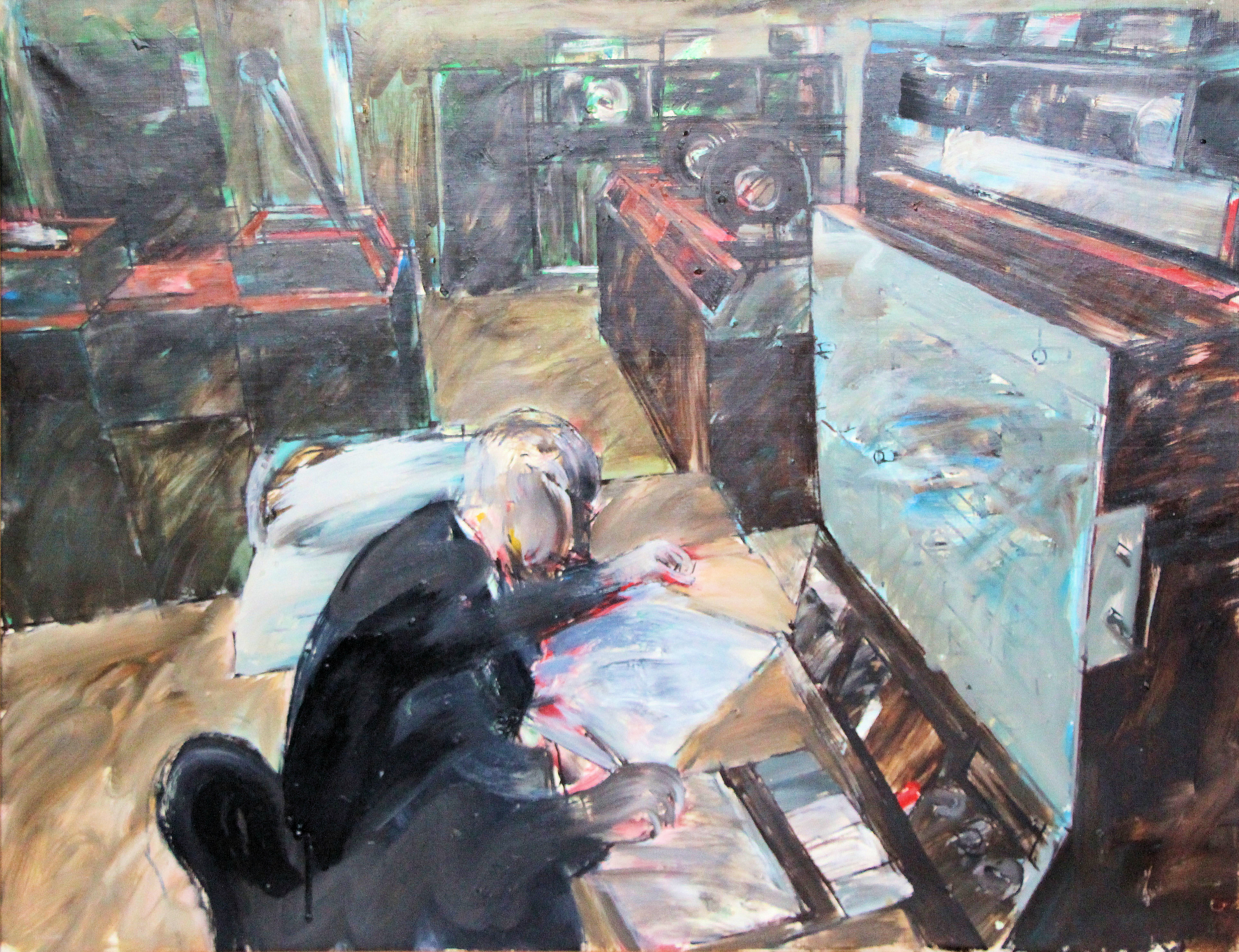 n.155 "Computerman" Oil on canvas. Year:1984. 116 x 89cm