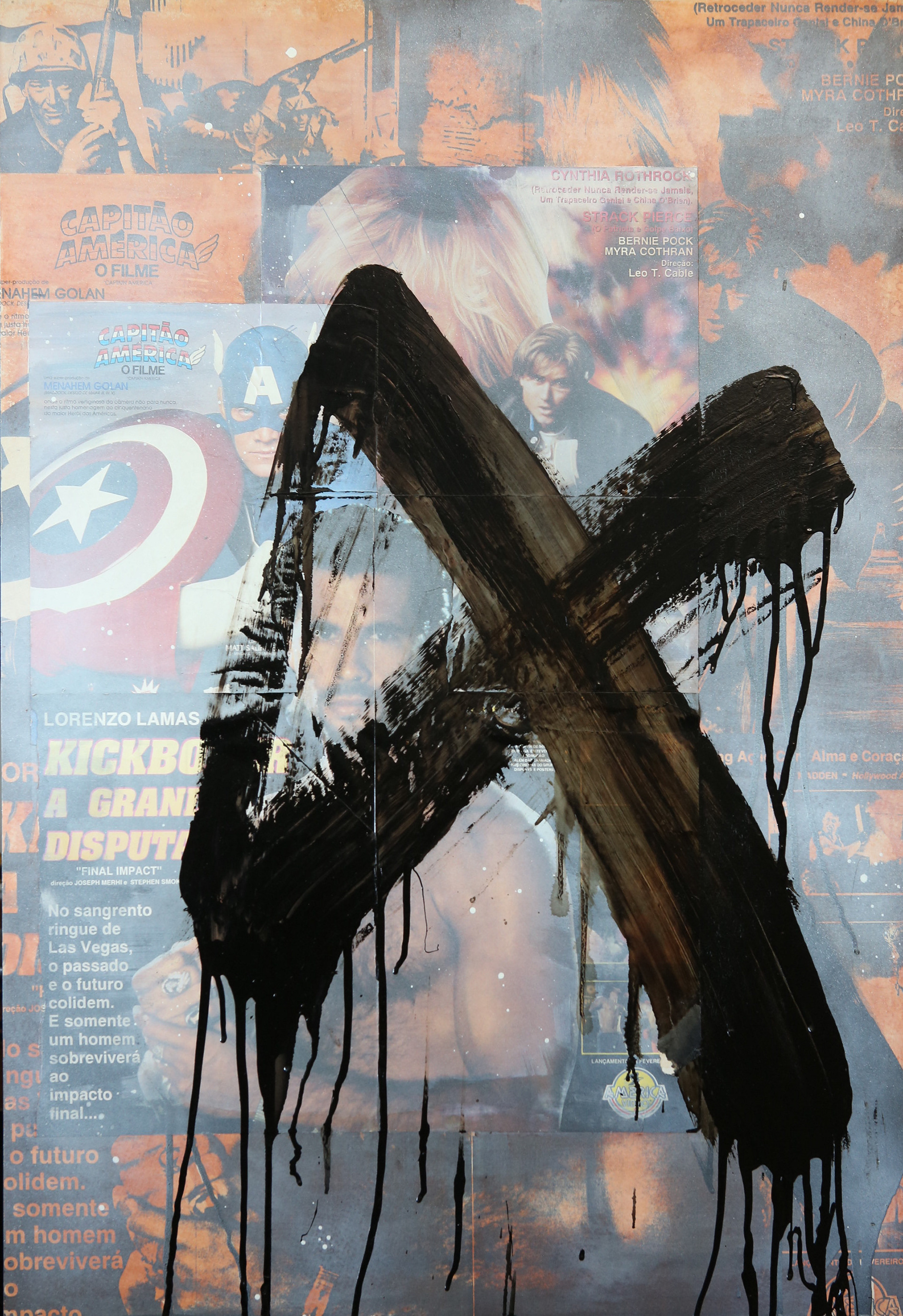 n.242 "X" Asphalt on photo collage. Year: 2000 72 x72cm