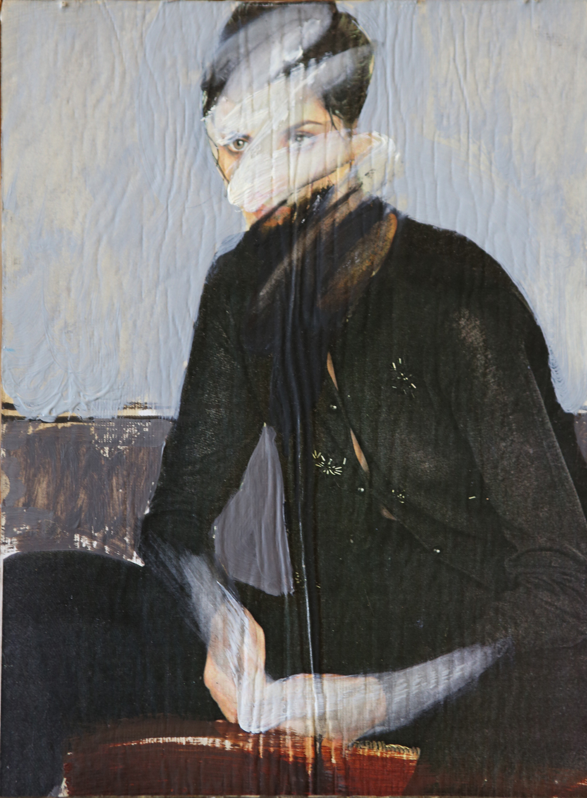 n.261 Study for "Absence" Asphalt, photo collage and oil on canvas. Year:2005. 28 x 26,5cm